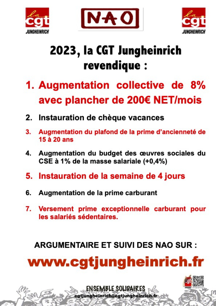 N'HESITEZ PAS A CONTACTER VOTRE SYNDICAT CGT JUNGHEINRICH