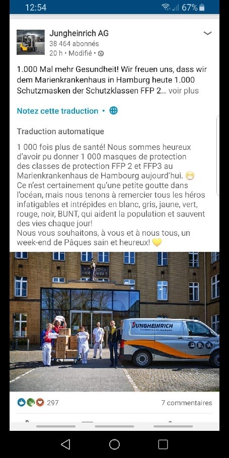 Heureusement, certains de nos clients compensent le manque en mettant à disposition des salariés Jungheinrich les materiels de protection nécéssaire.